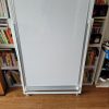 Chân bảng Flipchart F3 bằng sắt chống sét vuông 25mm, sơn tĩnh điện màu trắng, gắn 4 bánh xe di chuyển và cố định dễ dàng. Chân điều chỉnh độ cao bảng và xếp gọn được bằng 2 chống inox.
