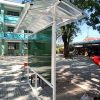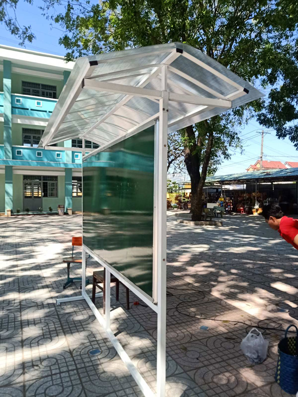 Mái che của bảng viết phấn thông báo làm bằng tol giả ngói màu đỏ hoặc tấm nhựa cao cấp màu trắng được bắt trên khung sắt sơn tĩnh điện màu trắng dày 1,2ly sử dụng sắt 40x40mm cùng hệ thống bánh xe di chuyển và gài cố định dễ dàng.