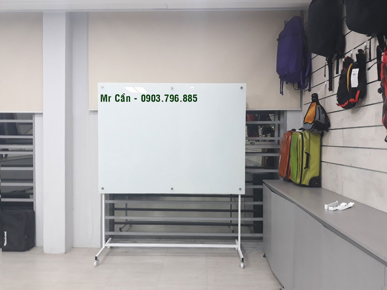 – Khung chân của bảng trắng bằng kính ghép keo sữa được làm bằng sắt sơn tĩnh điện dày 1,2 ly sắt vuông 20x40mm với thiết kế chắc chắn và có hệ thống bánh xe giúp cho bảng di chuyển và gài cố định dễ dàng.
