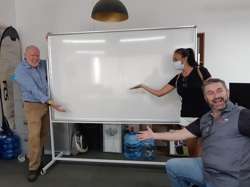 Bảng di động có cân bằng sắt sơn tĩnh điện màu trắng sữa chống rỉ sét, có gắn 4 bánh xe Taiwan di chuyển và cố định dễ dàng.