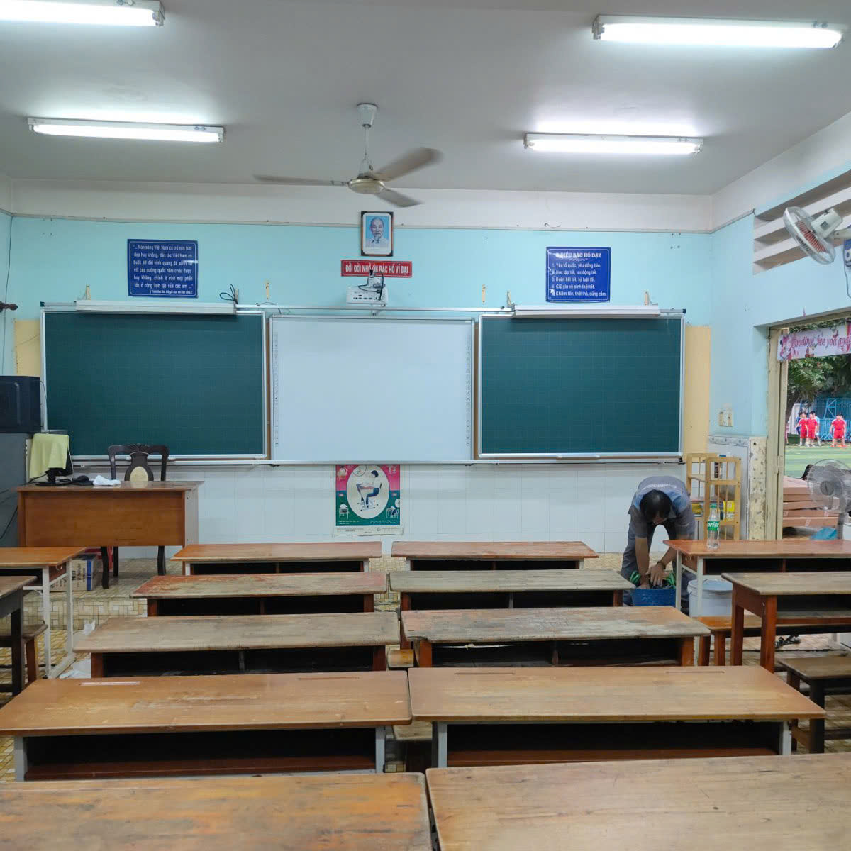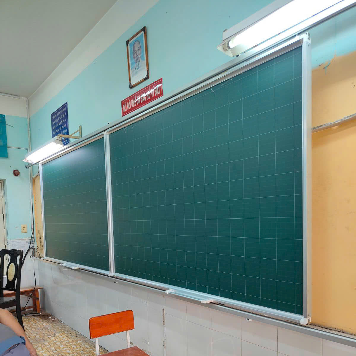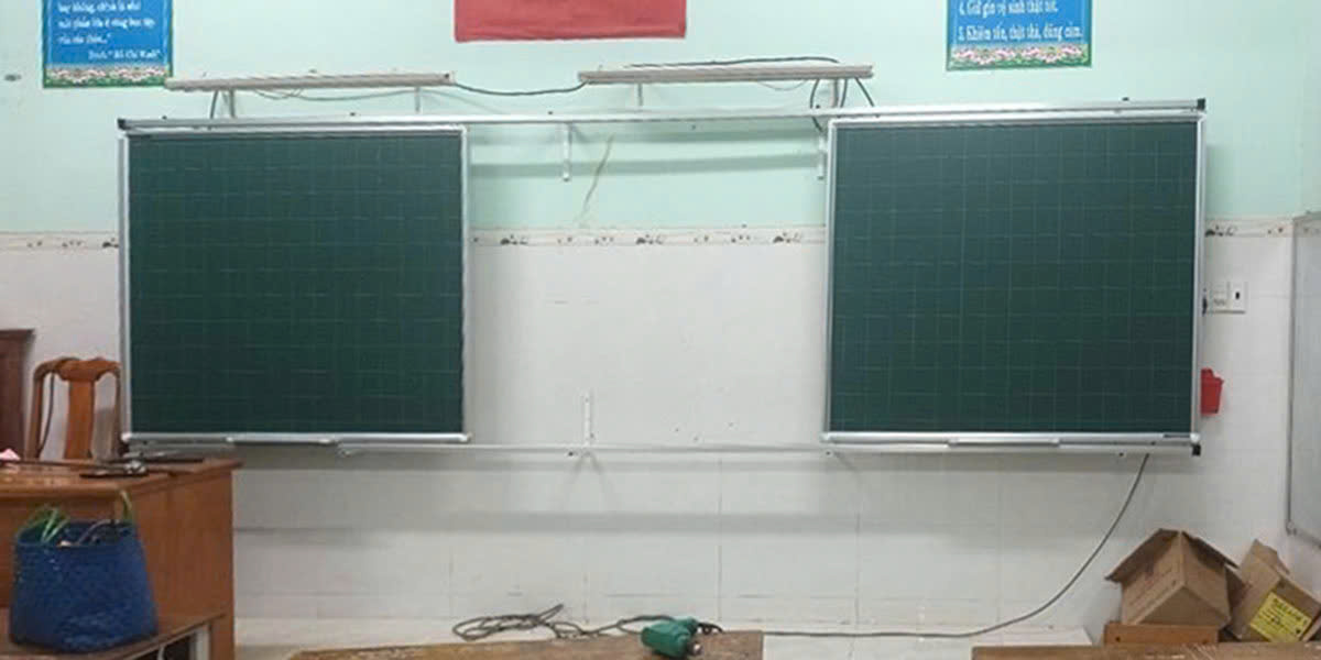 02 bảng trượt: Bảng từ viết phấn Hàn Quốc – Kích thước: cao 120cm × ngang 180cm.